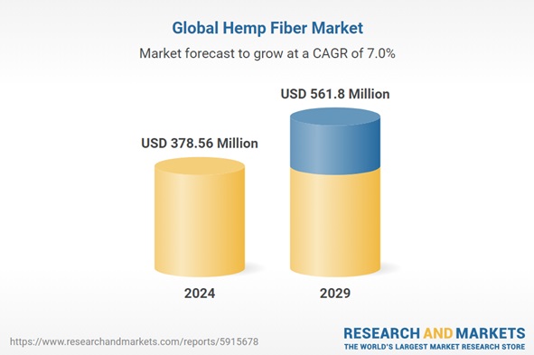 Industry researchers at Research and Markets estimate that the global hemp fiber market will be worth $378.56 million dollars in 2024, and that it will increase in value to a projected $561.8 million by 2029.